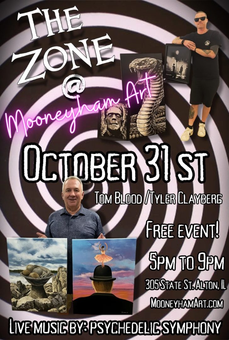 Mooneyham Art invites you to step out of the ordinary and slip into The Zone, an art exhibition unfolding at 305 State Street in haunted downtown Alton. The Zone will coincide with the city’s historic Halloween Parade. This immersive experience offers a surreal escape from the cold, complete with live music, hot cocoa, and mind-bending art while waiting for the parade to start.