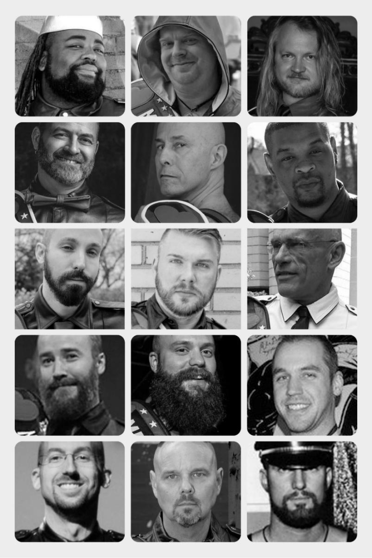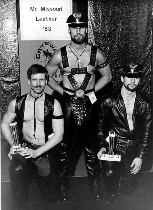 Wall of Fame – Your past Mr Missouri Leather winners (from top left to less top right): Jaybee Aviance (2024), Brandon Rinati (2023), Tighearn Draioct (2022), Vern Warner (2021, 2020), Robert Segarra (2019), AJ Gault (2018), Brian Lambert (2017), Ty Portell (2016), Andy Sturckhoff (2015), David Payne (2014), John Metzner (2013), Scott O’Brien (2012), DJ Kaiser (2011), and Terry Laupp (2010); and original Mr Missouri Leather Charles Scheib (1983).