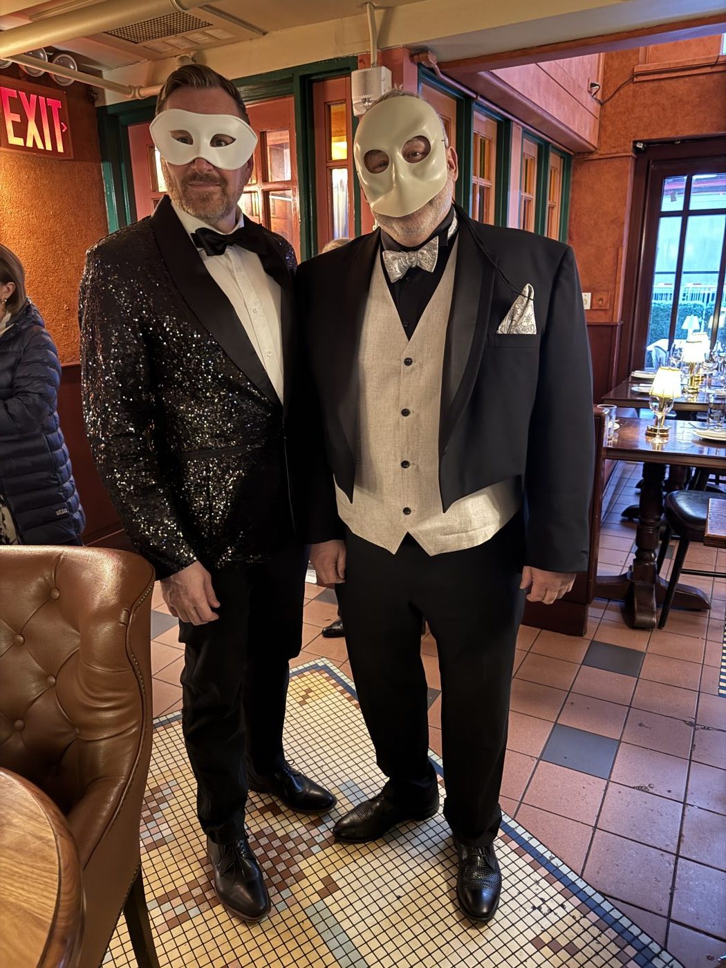 The evening starts before you arrive. The production asks you to come masked, dressed in black, white, and silver, and suggests Paris Opera fabulousness. My friend and I took that as permission. By the time you reach the coat check, you already feel like part of the show.